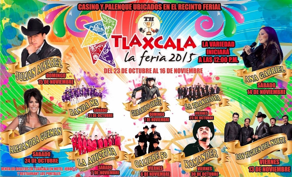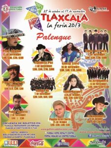 Consulta aquí la cartelera del palenque de la Feria Tlaxcala 2015. La Feria de Tlaxcala se distingue por llevar los mejores espectáculos a su palenque. En este 2015 no habrá excepción y este foro tan importante dentro de la Feria tendrá un programa completísimo para el disfrute de todos y que se pasen una noche inolvidable en compañía y con la voz de sus artistas predilectos.