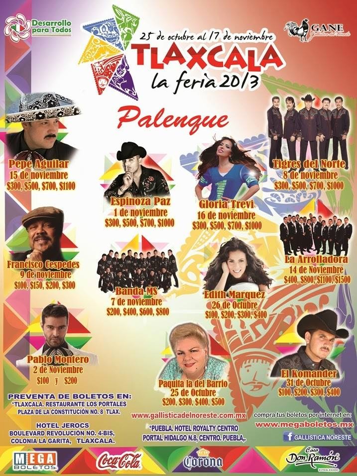 programa del palenque de la feria de Tlaxcala 2014 con las fechas de presentación de cada artista y el precio de los boletos que tendrá cada espectáculo. No te lo puedes perder!